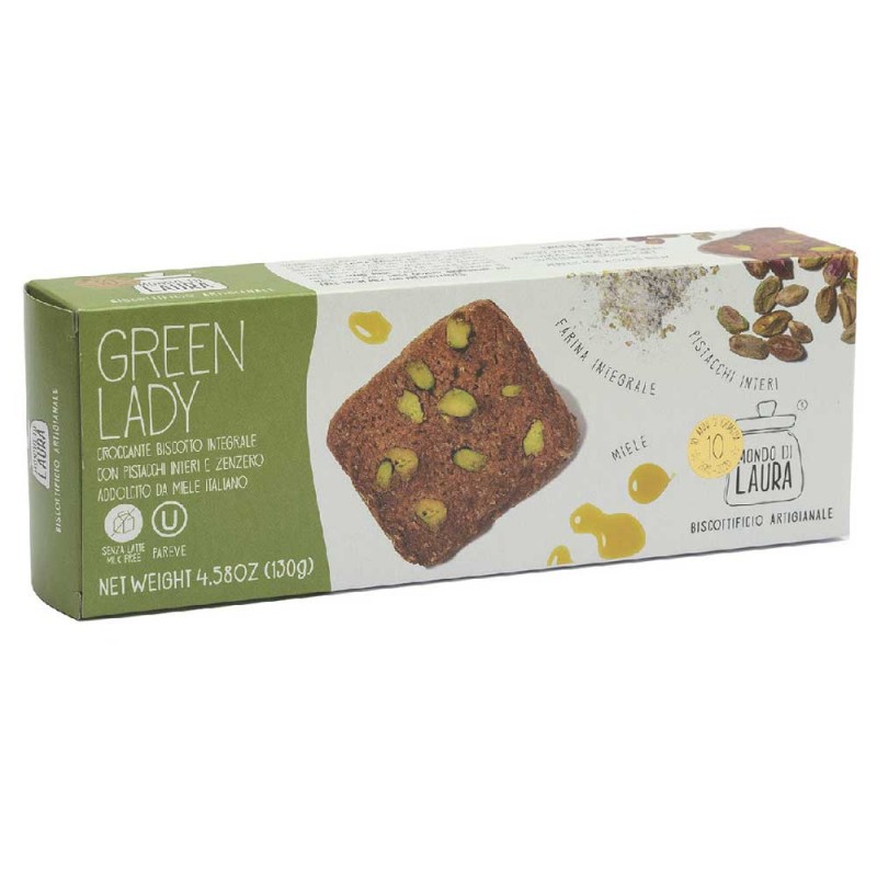 Caratteristiche: Non un semplice biscotto con i pistacchi. La sua personalità' e' data dalla combinazione di questi con la farina integrale, il miele ed un tocco di zenzero. Un avvolgente abbraccio di sapori in questa originale ricetta di Laura.